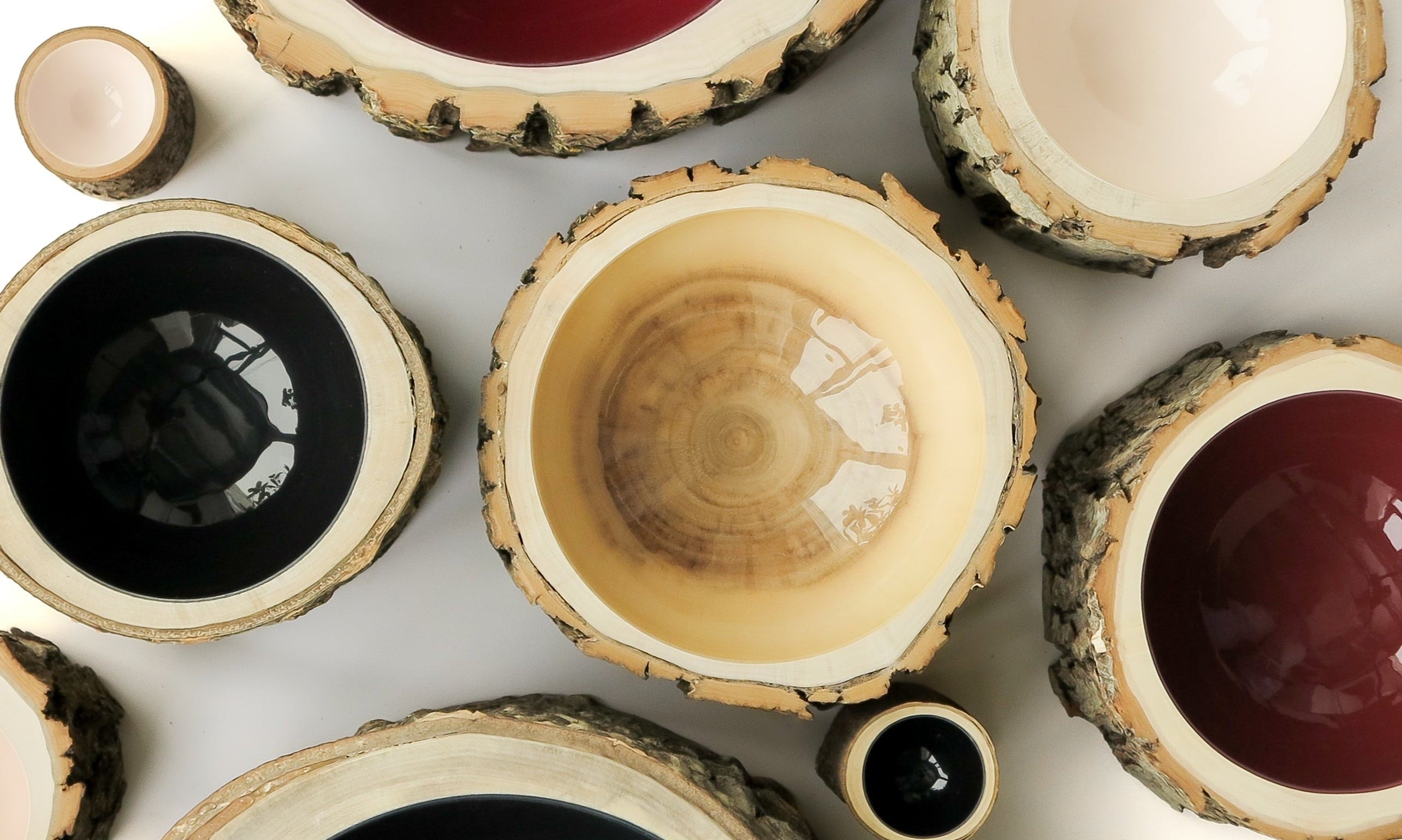 • Log Bowl | Size 2 | Sage Small wooden bowl with bark exterior and a sage coloured interior.